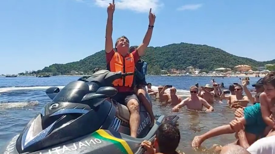 Sem máscara, Bolsonaro cumprimenta apoiadores em praia de Santa Catarina
