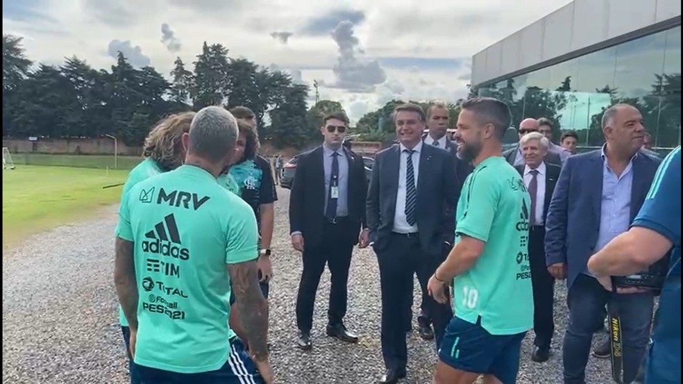 Treino do Flamengo é marcado por visita de Jair Bolsonaro